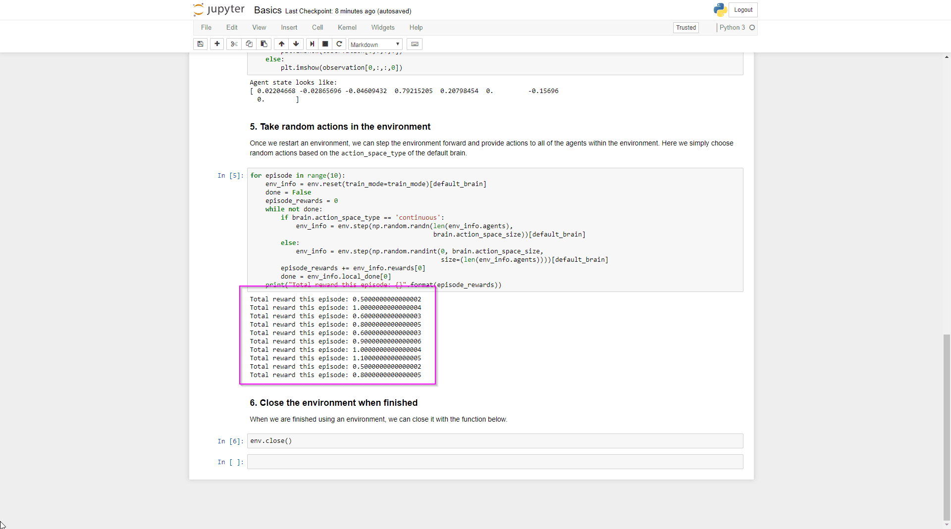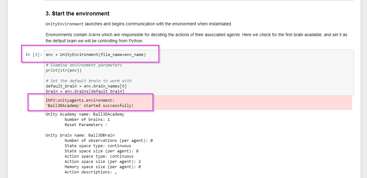 Python in the notebook talks to the "brain" in the environment. Its a sort of native bridge between the machine learning API in Python and your "game" / "environment".
